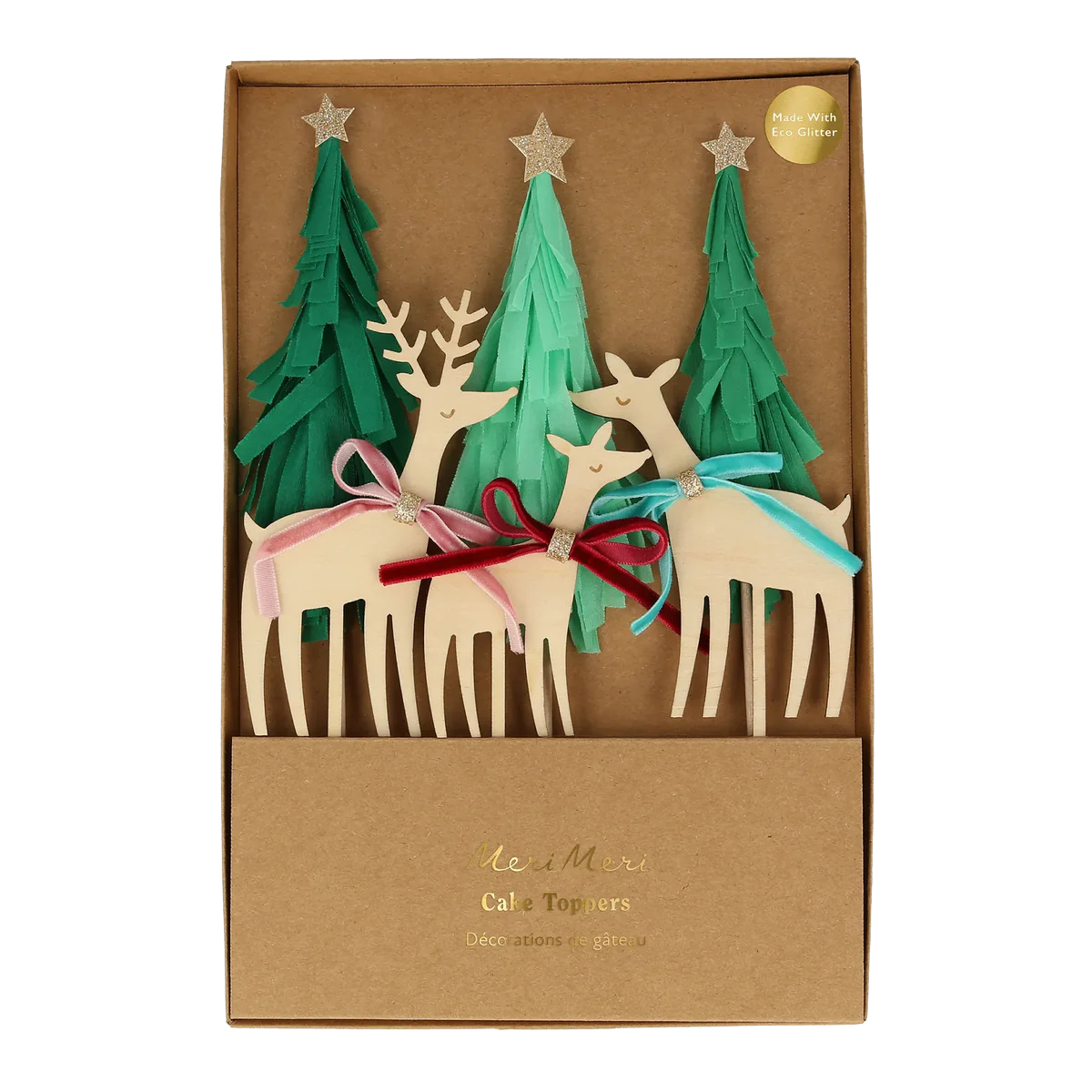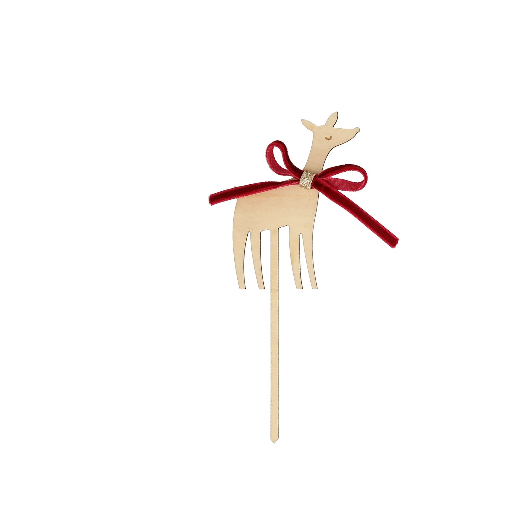 - The reindeer are embellished with velvet ribbons in dusty pink, rich red and teal