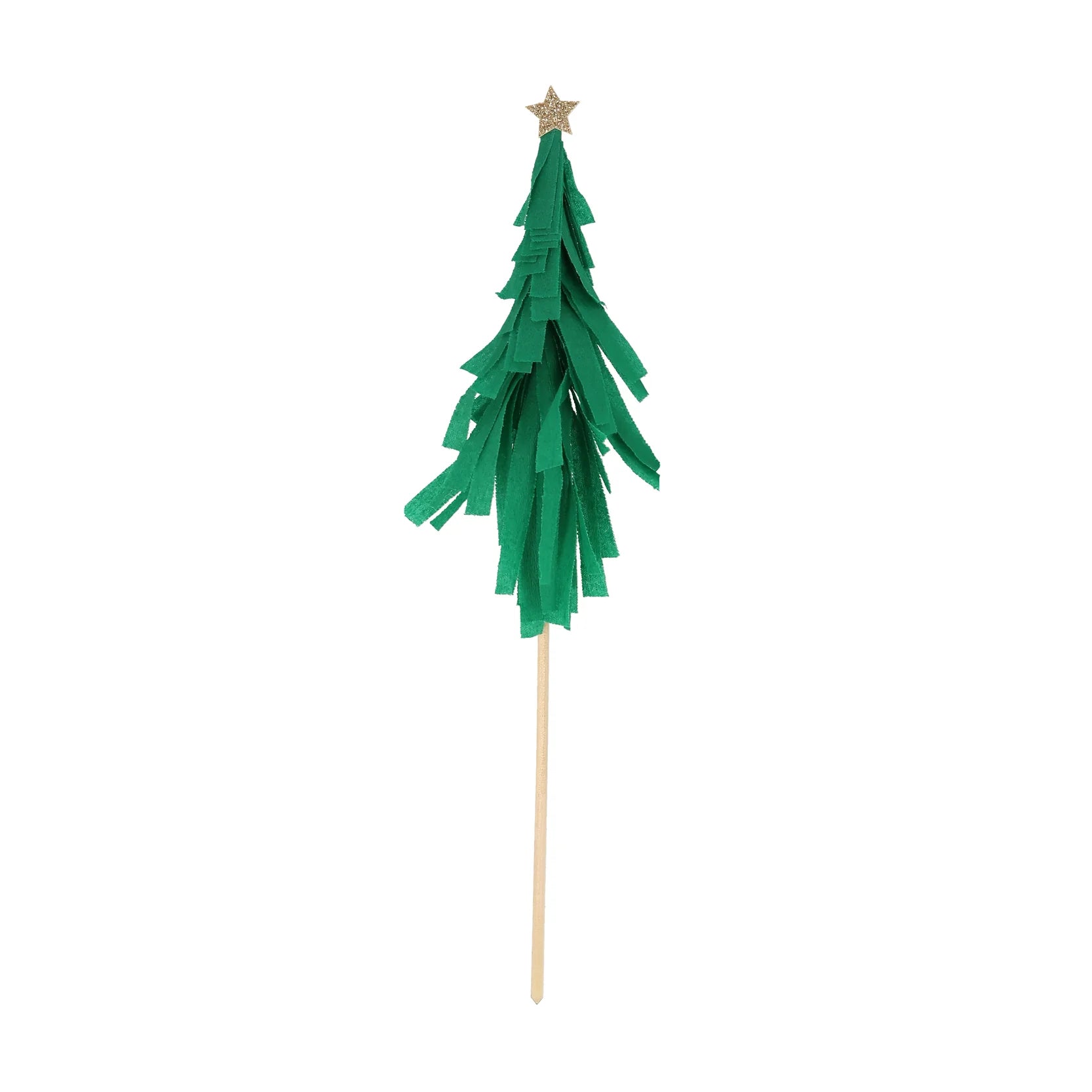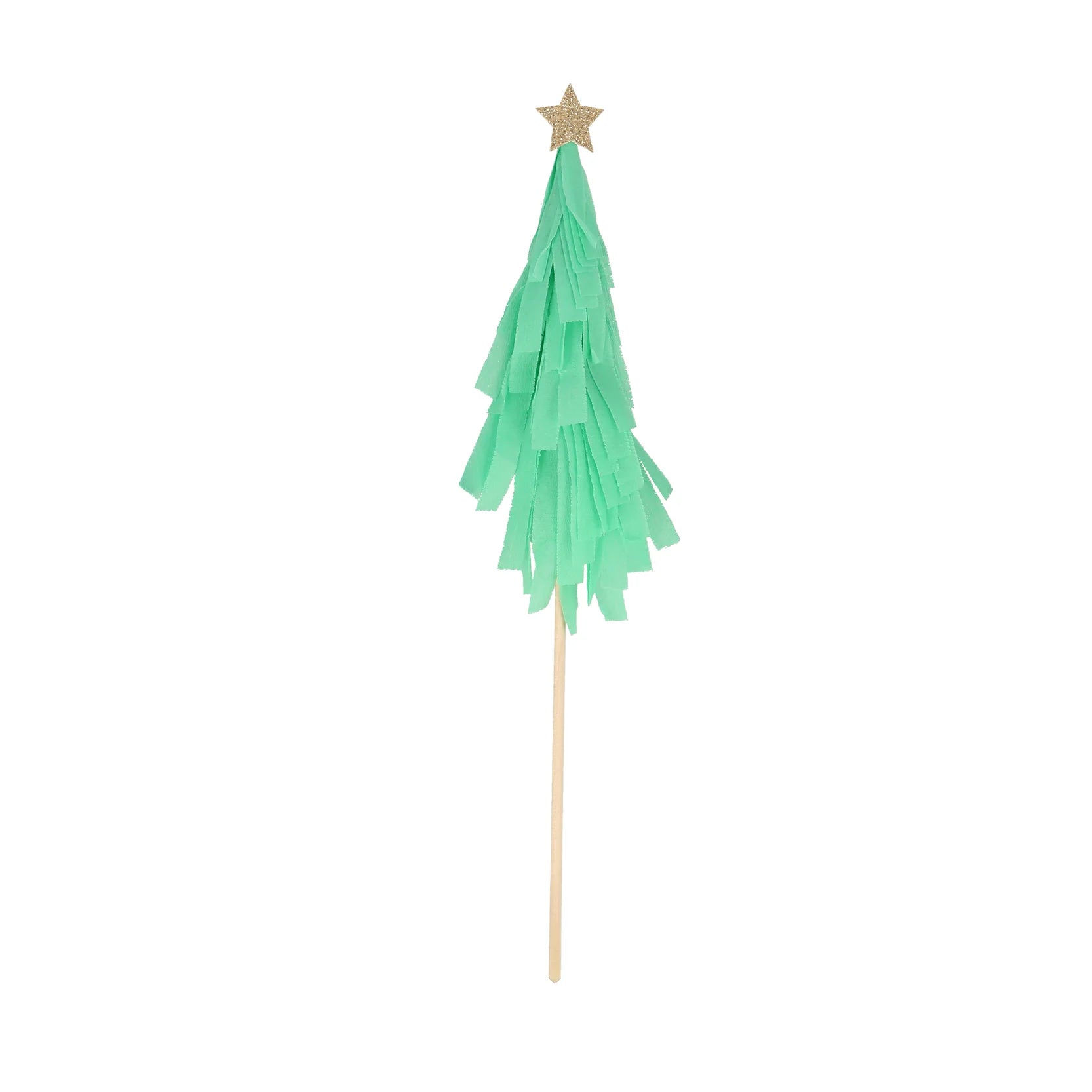 - 3 Tree toppers crafted from crepe paper in dark green, mid green and mint