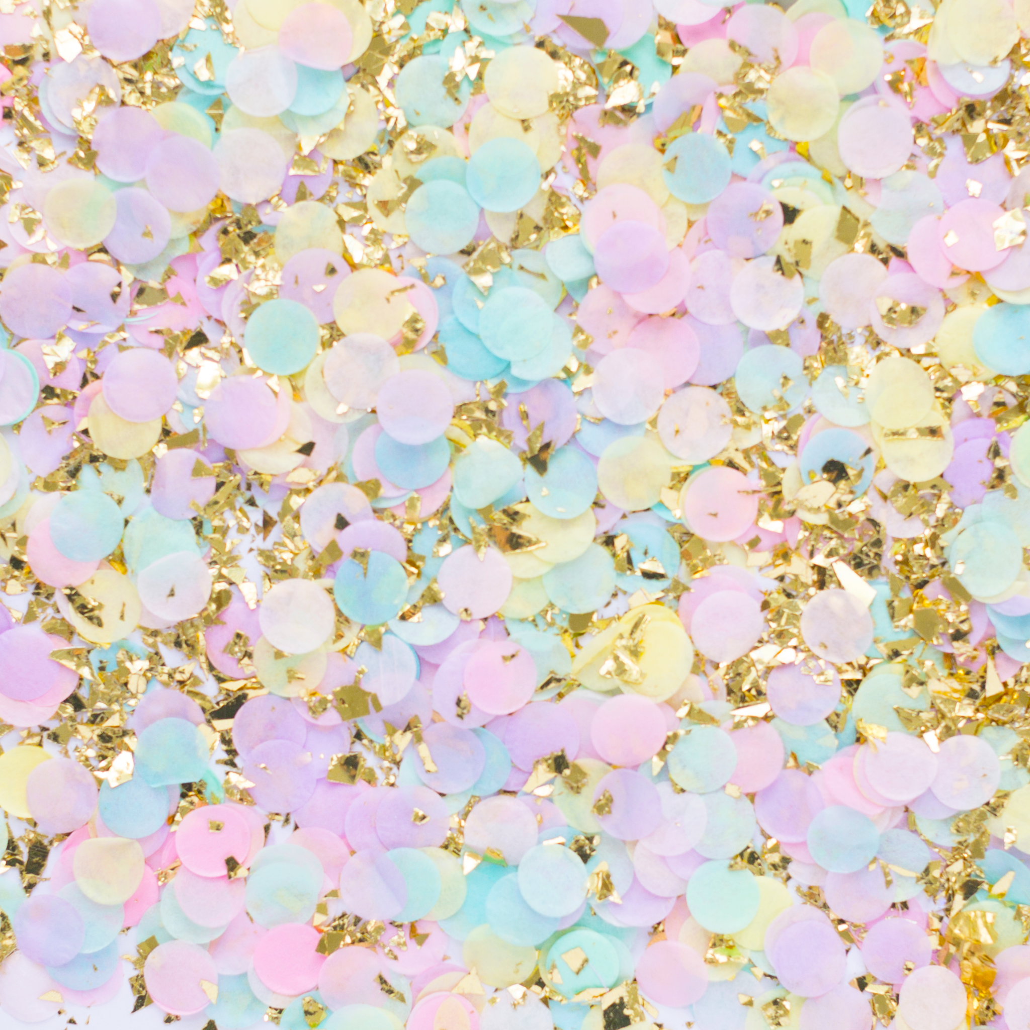 • Colors: pink, light pink, pastel yellow, aquamarine, lilac, mint and gold shred