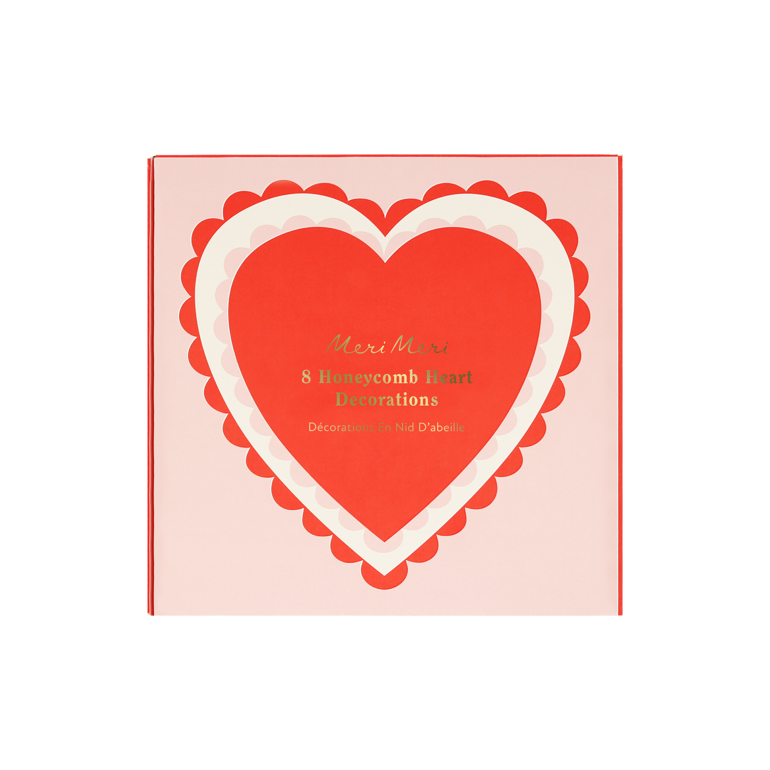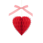 - 8 Hearts crafted from honeycomb tissue paper, on the front and back, in red, pink and cream