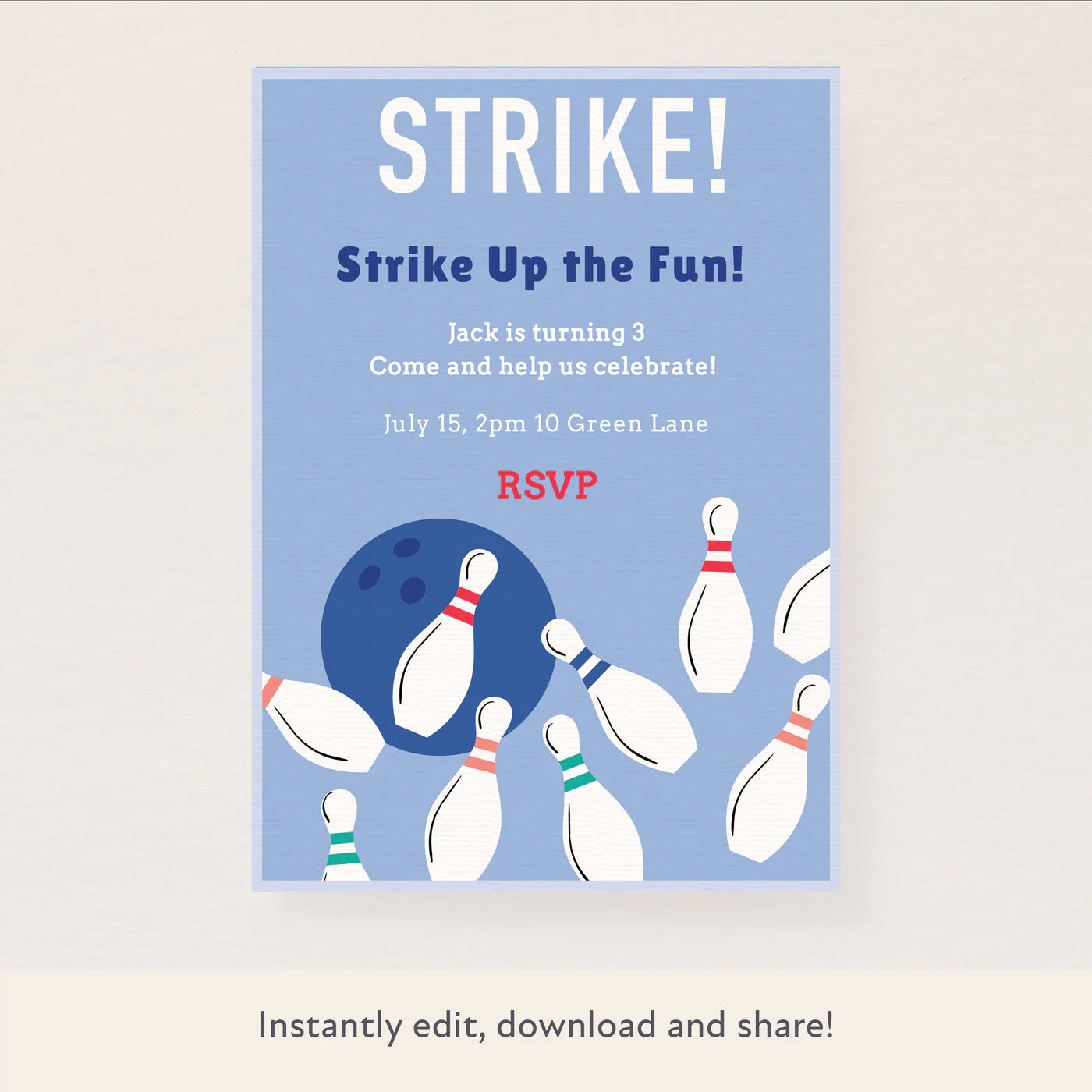 Bowling Download & Print Invitation