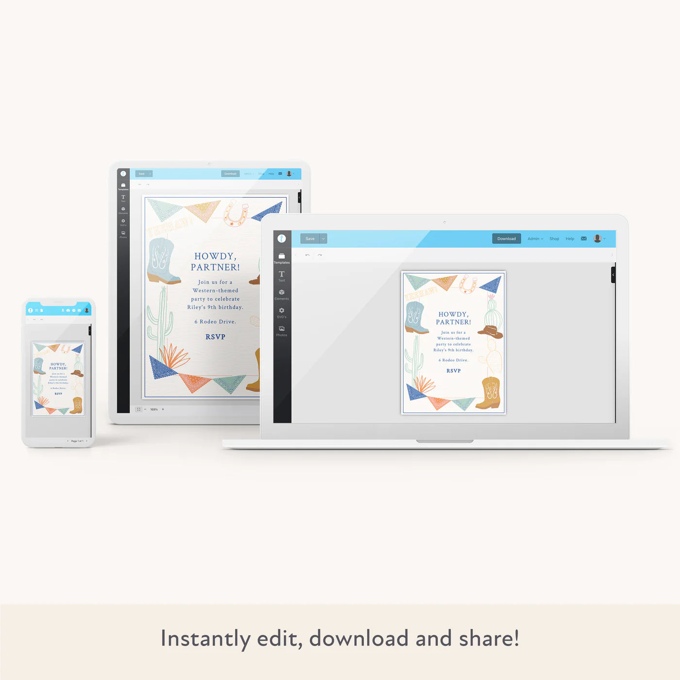 Western Download & Print Invitation