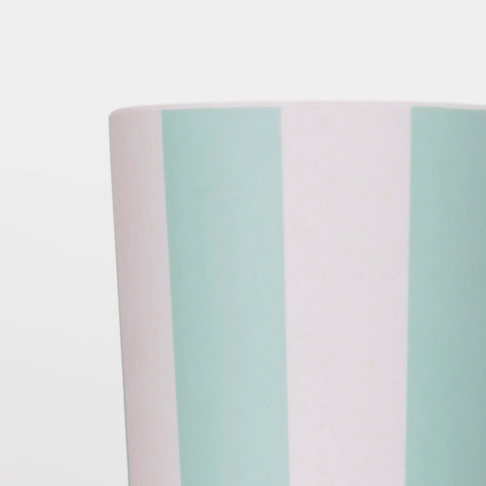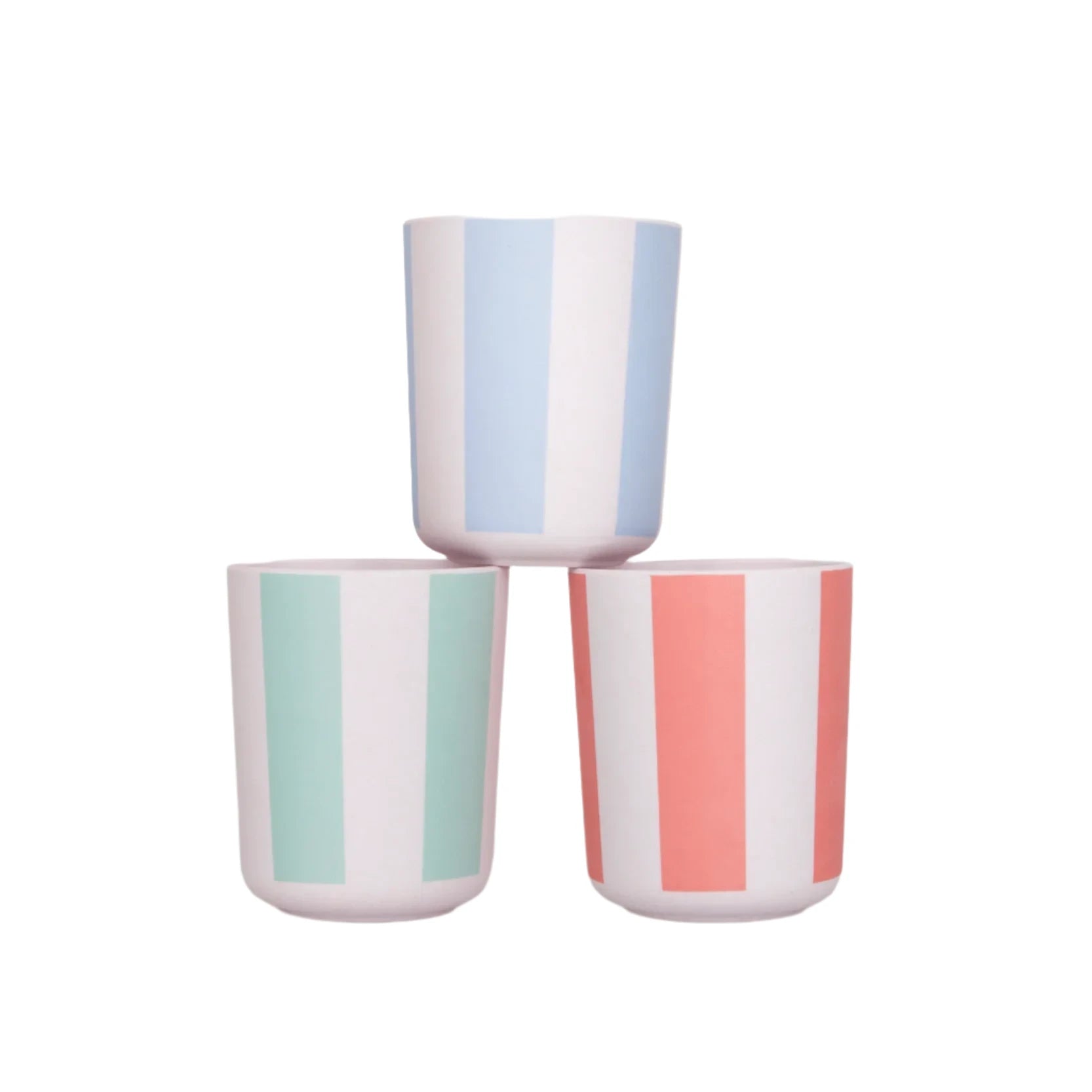 • Three color ways - red, mint and blue stripes on a pale pink base