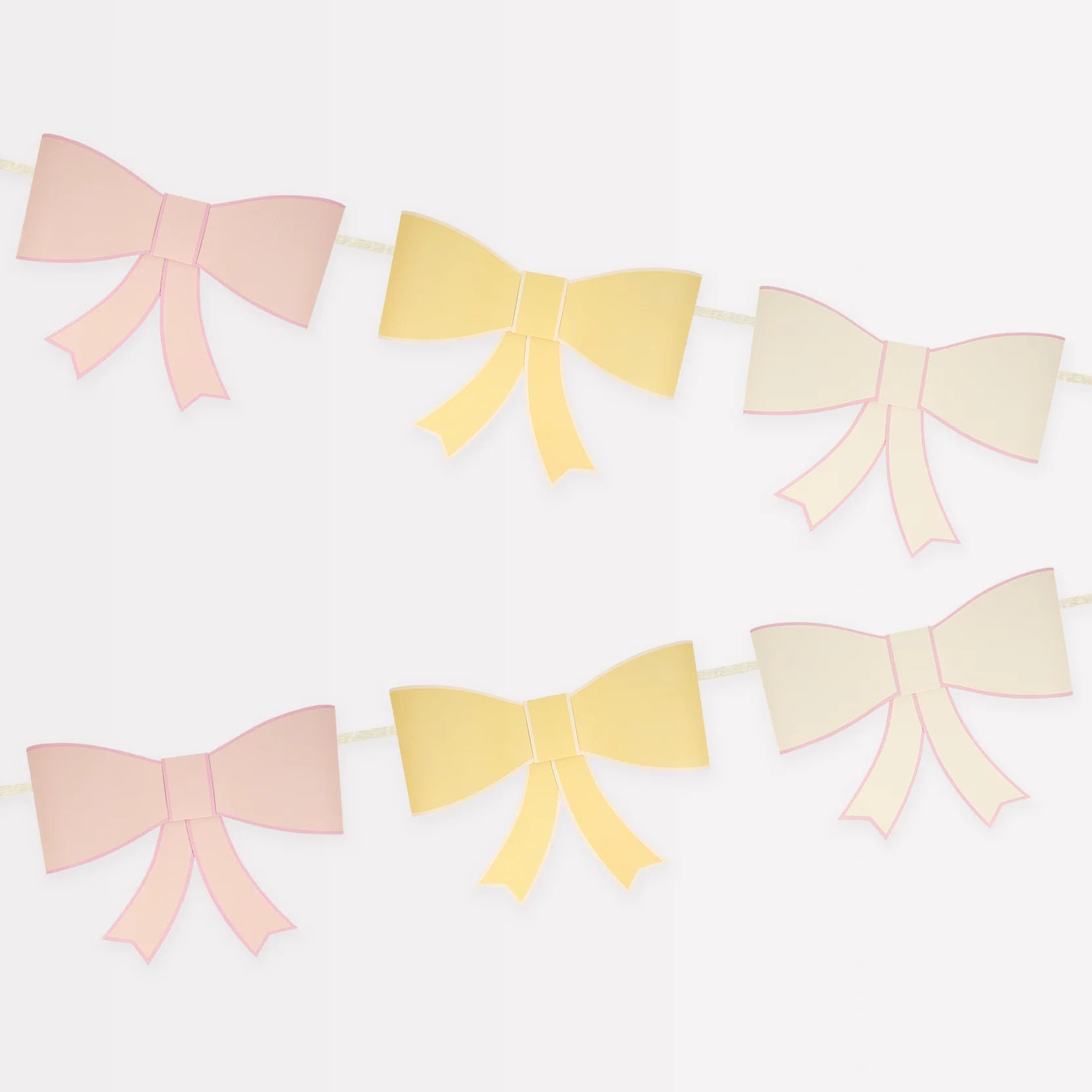 • The garland features 8 pre-strung bows on an ivory ribbon
