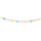 - Includes 3 garlands each with 15 tissue paper bows in 5 colors - pale yellow, blue, pink, mint and peach