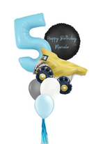 - Includes: 34" number balloon, 32" dumper truck ballon, 18" personalized round balloon, 3 latex balloons, tassel tail and weight.