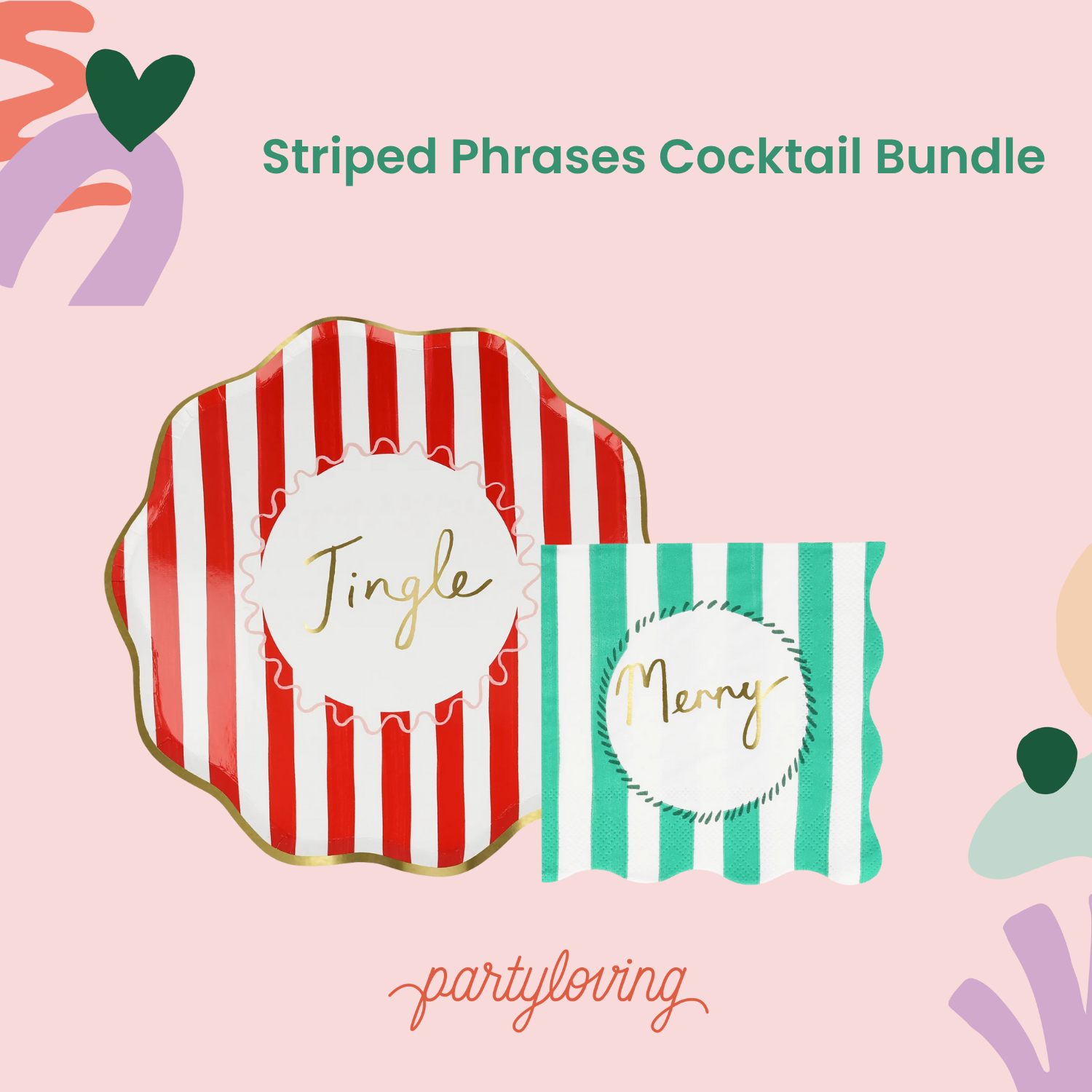 - Set of 8 cocktail plates, 2 of each design - with mint, green, red and pink stripes
