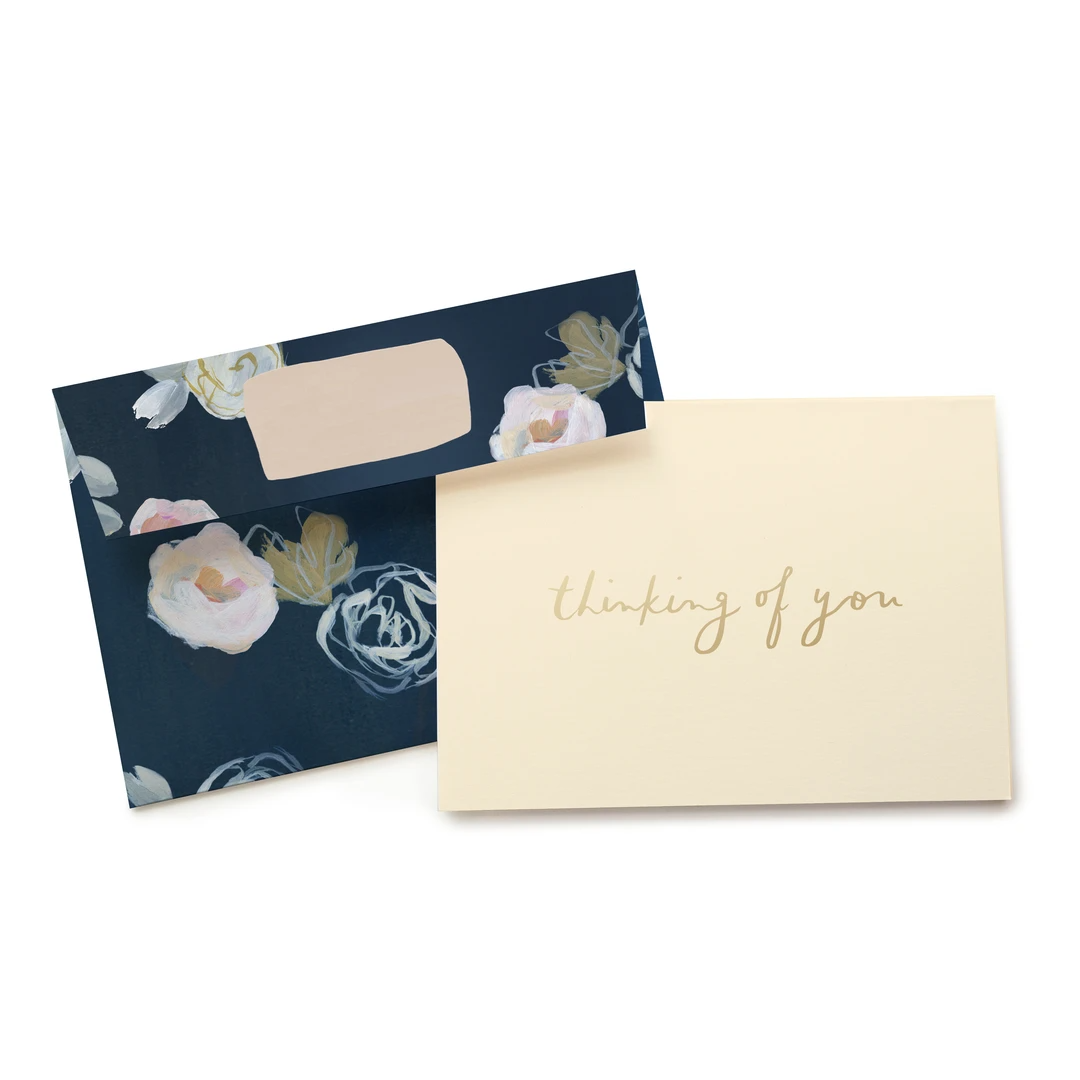 A printed envelope in our Blue Florals pattern with elegantly simple foil lettering makes this design a go-to card year round.