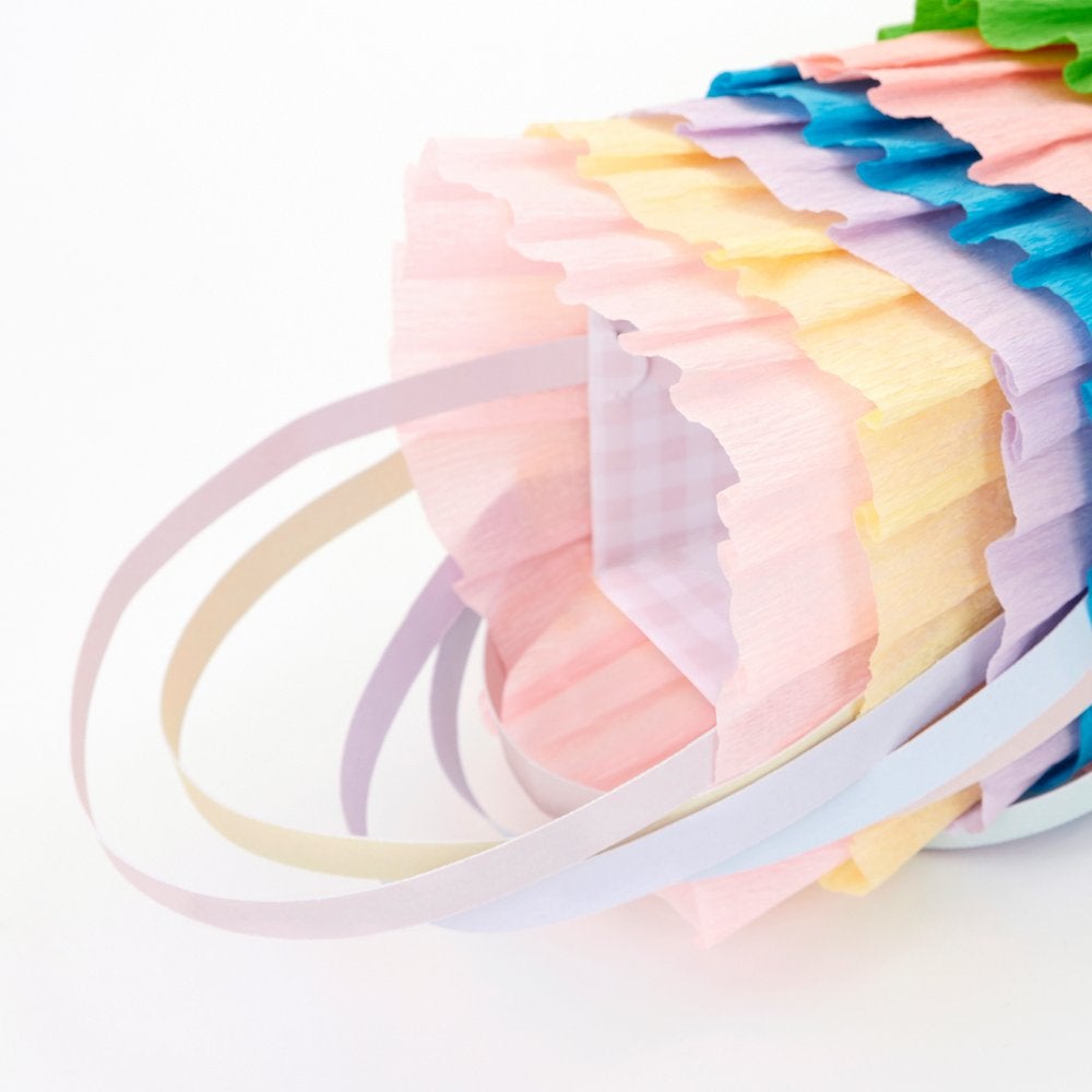 - The baskets are made from card with a crepe paper ruffle going around the outside