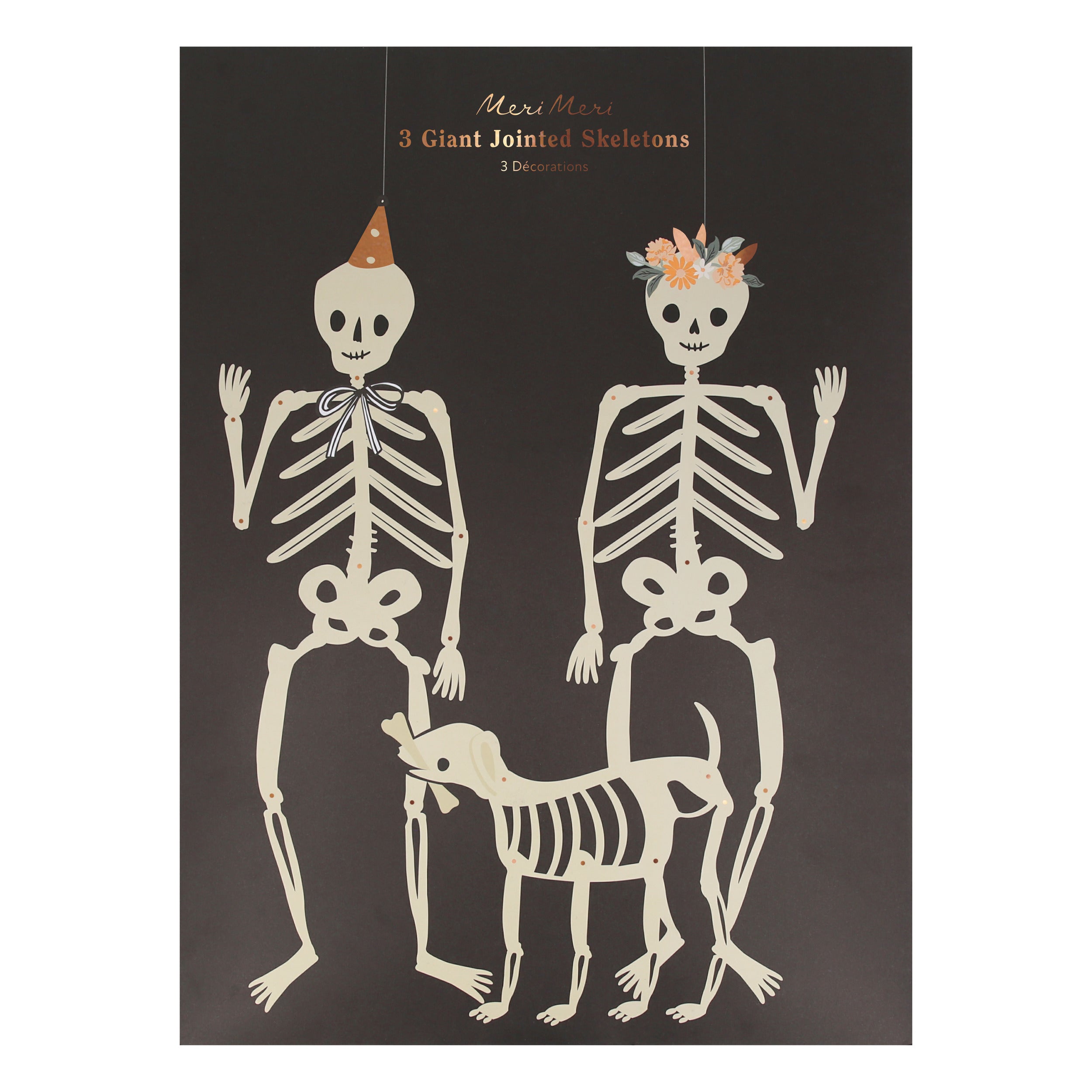 - The pack contains 3 fully assembled skeleton decorations, with paper fasteners for the skeleton joints