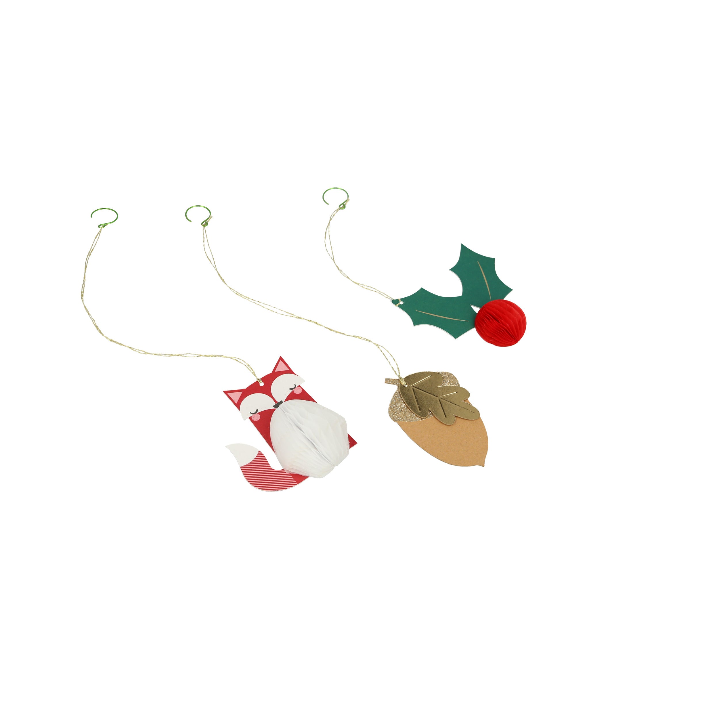 - The pennants include honeycomb tissue paper on the front and back (which is held open by hook and loop dots, supplied), a red metal bell on the elf's hat which sweetly tinkles, a red feather on the Nutcracker's hat, fine glitter and shiny gold foil on the front and back