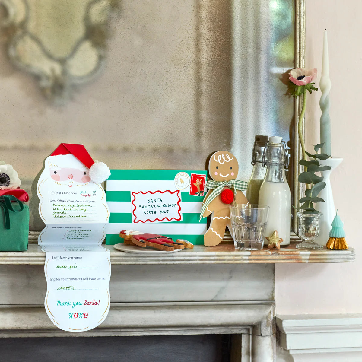 - The set includes a letter to Santa, with a white yarn pompom detail