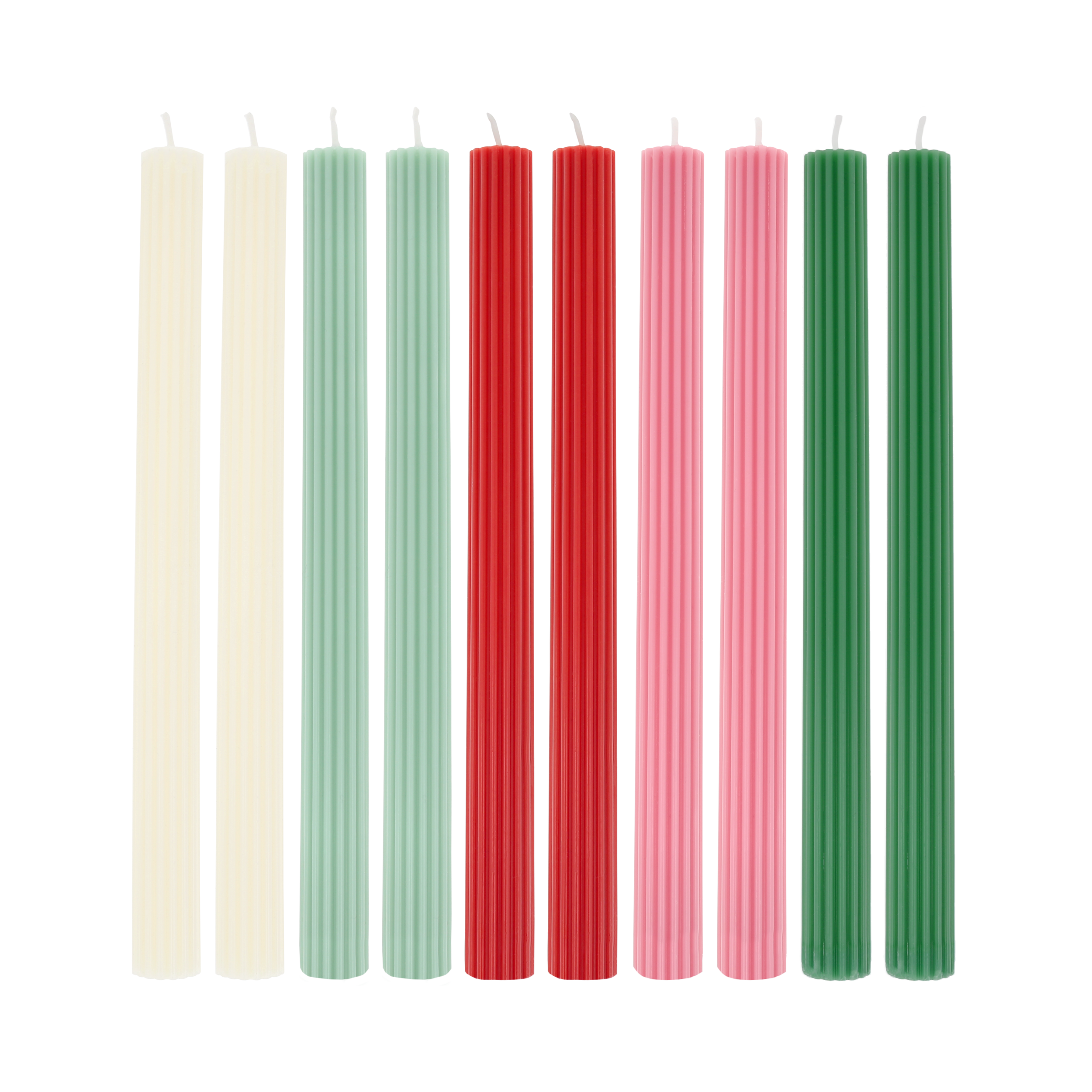 • Ivory, sage, dusty pink, berry red and dark green candles