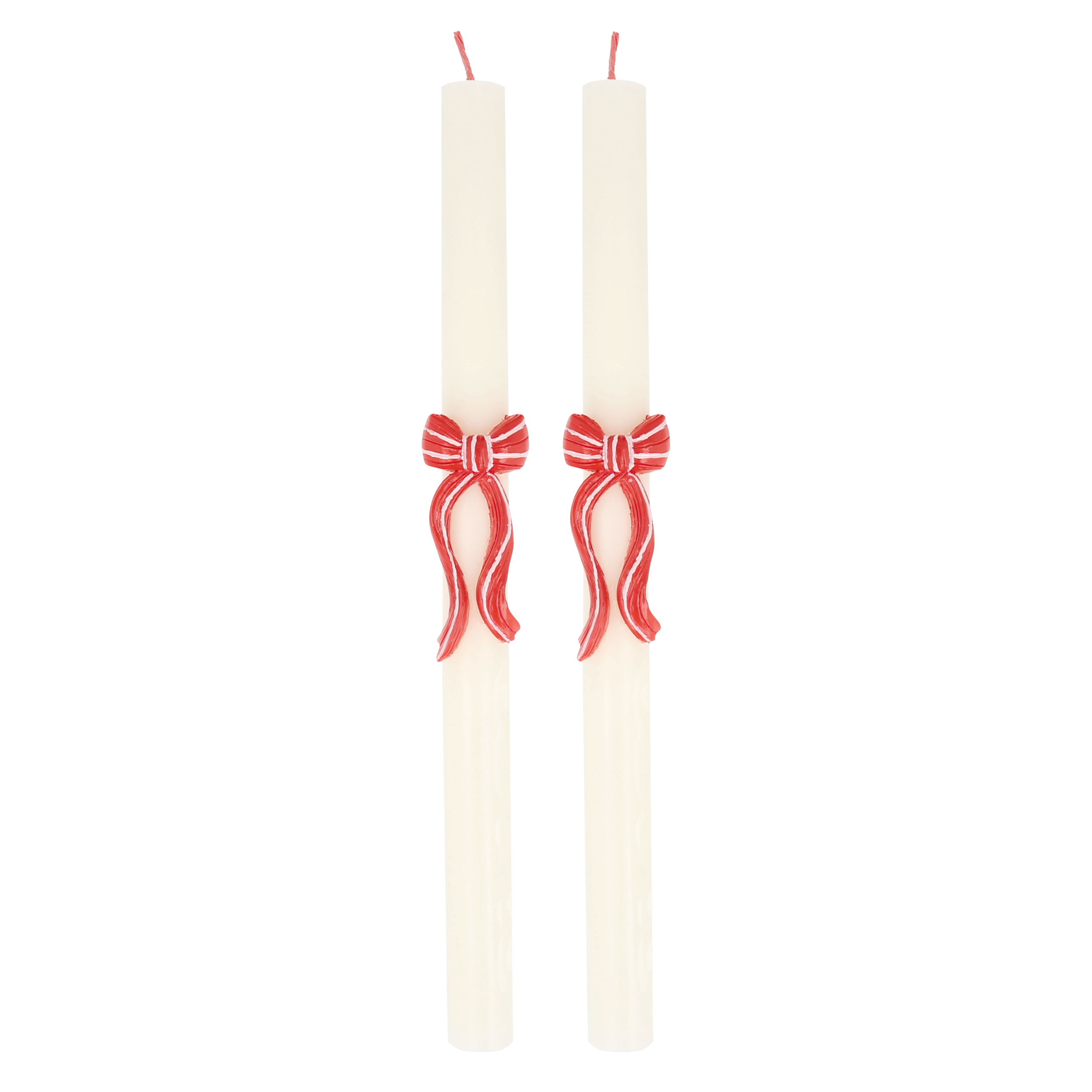 Red Stripy Bow Table Candles