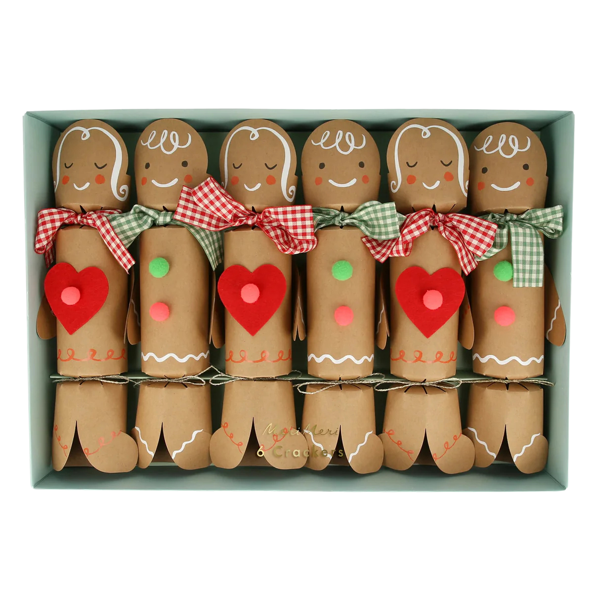 - Each cracker contains a green tissue paper hat, a joke, an etched wooden gingerbread person and a paper race track