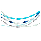 - The streamers are crafted from crepe paper in blue, mint, dark blue, metallic blue and metallic silver