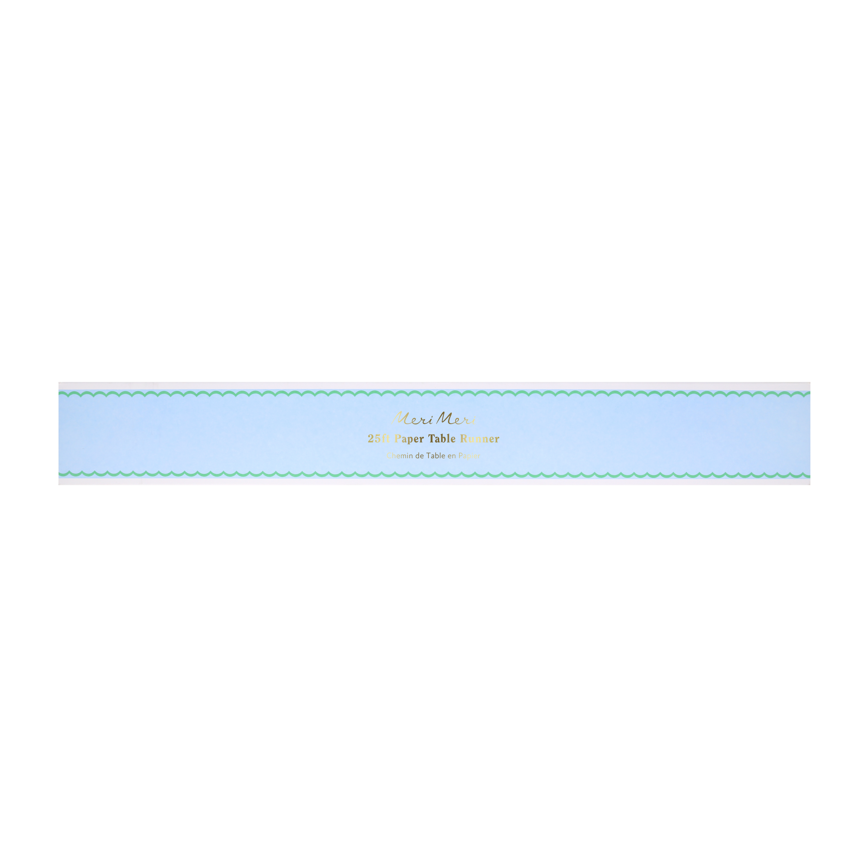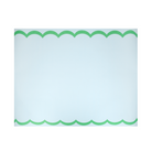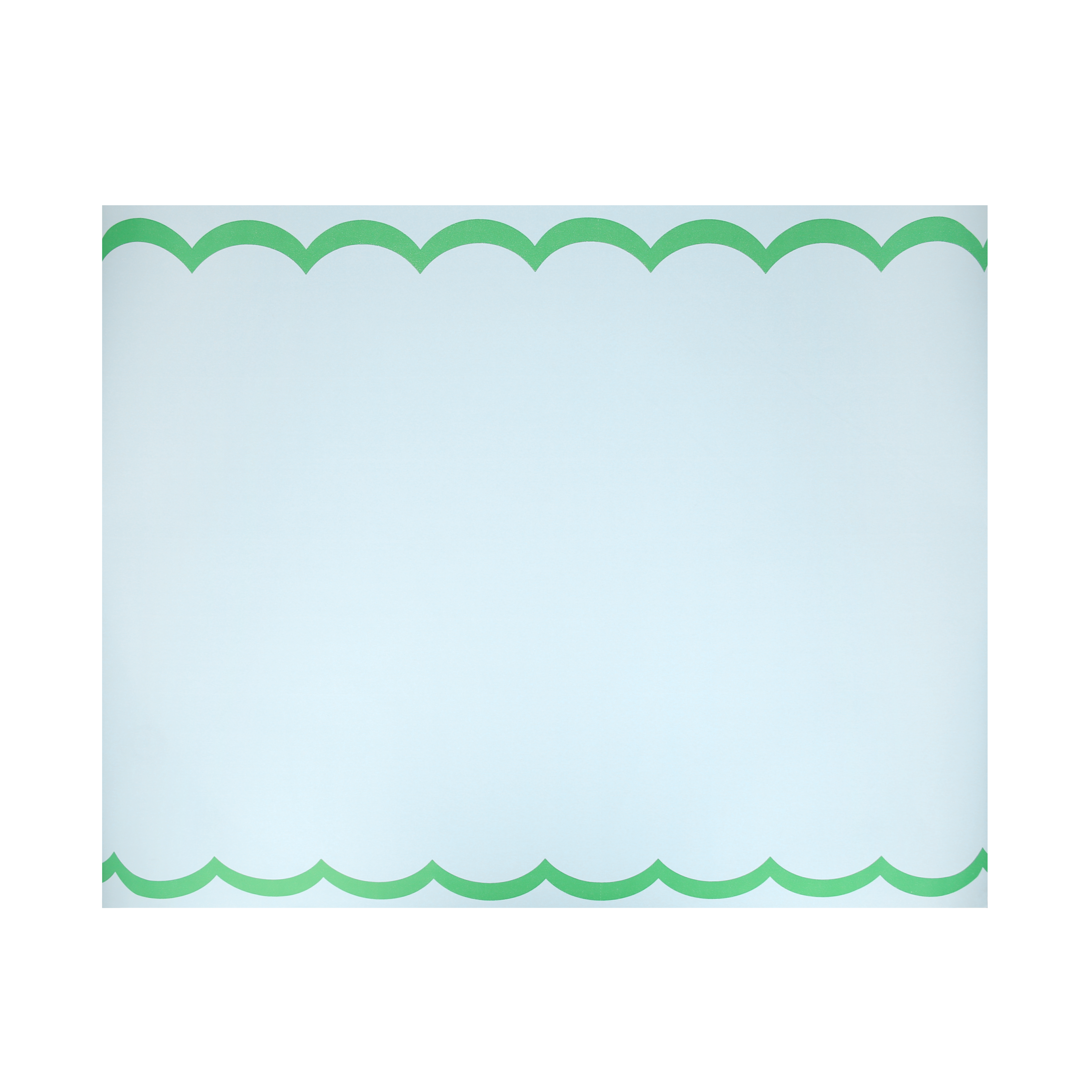 - Made from paper, in a soft shade of blue with a green scalloped edge