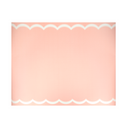 - Made from paper, in a soft shade of pink with a white scalloped edge