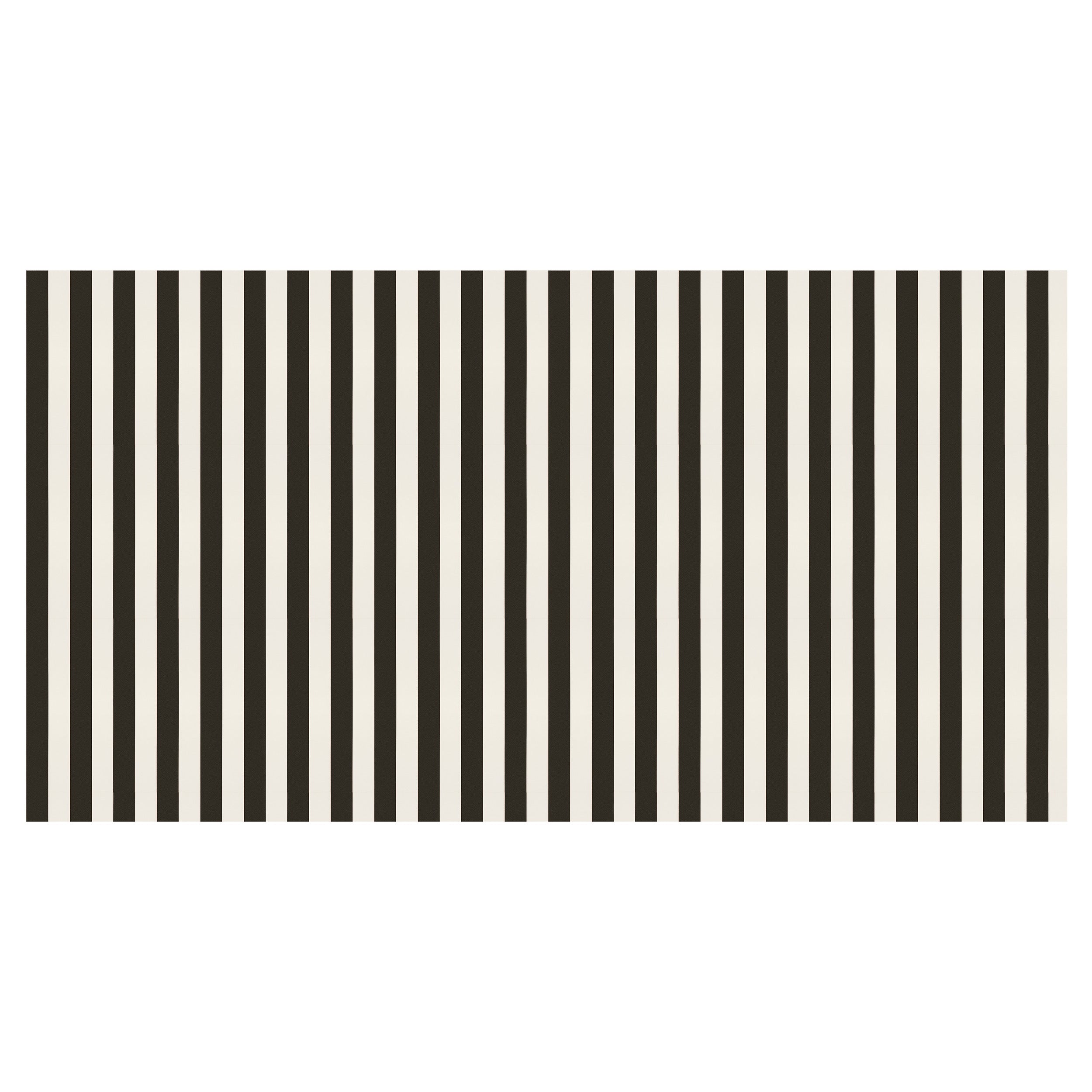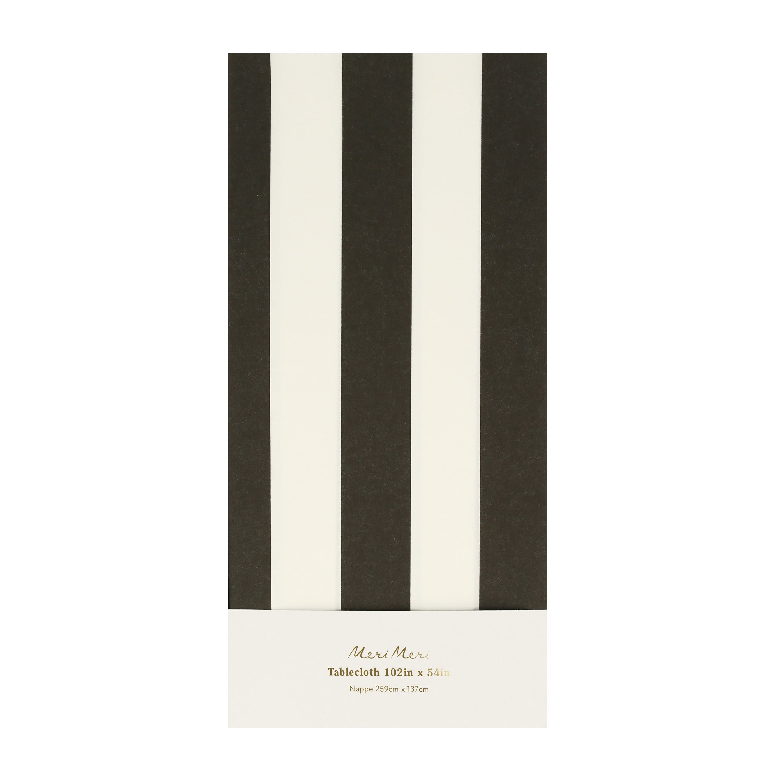 - Lightly laminated black and white striped tablecloth