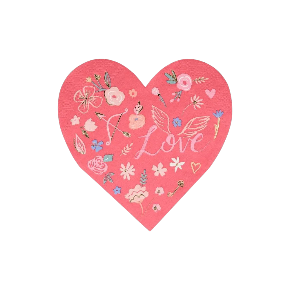 - The napkins are made in the shape of a love heart, printed with charming illustrations