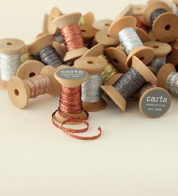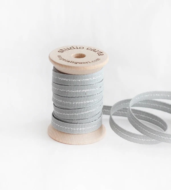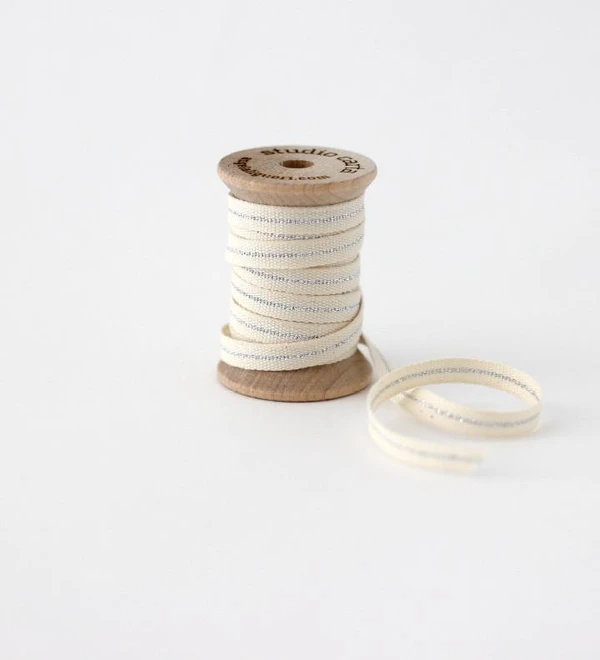 Metallic Line ribbon Wood Spool - Natural/Silver Line
