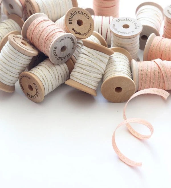 Metallic Line ribbon Wood Spool - Blush/Rose Gold