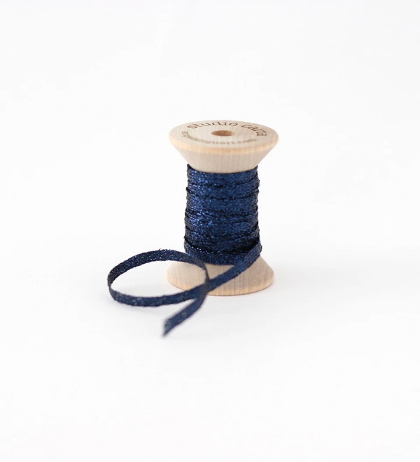 METALLIC BRAIDED RIBBON WOOD SPOOL - starry night blue