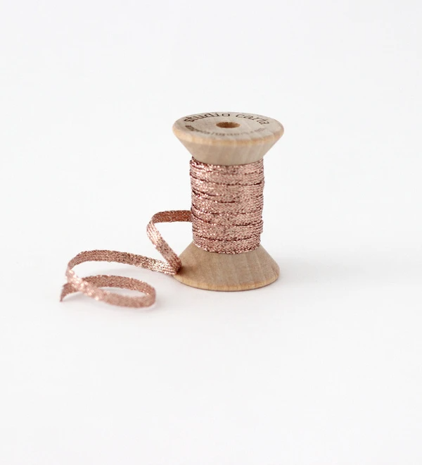 METALLIC BRAIDED RIBBON WOOD SPOOL - rose gold