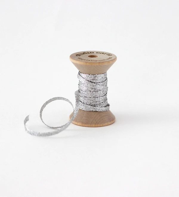 METALLIC BRAIDED RIBBON WOOD SPOOL - silver