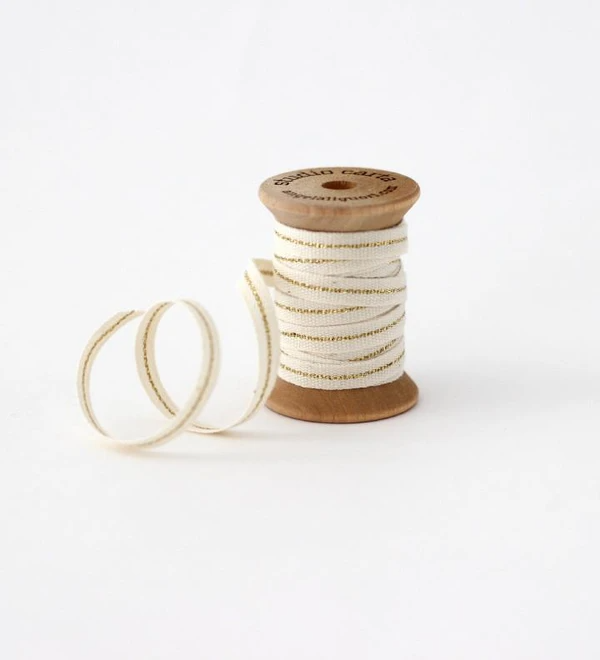 Metallic Line ribbon Wood Spool - Natural/Gold Line