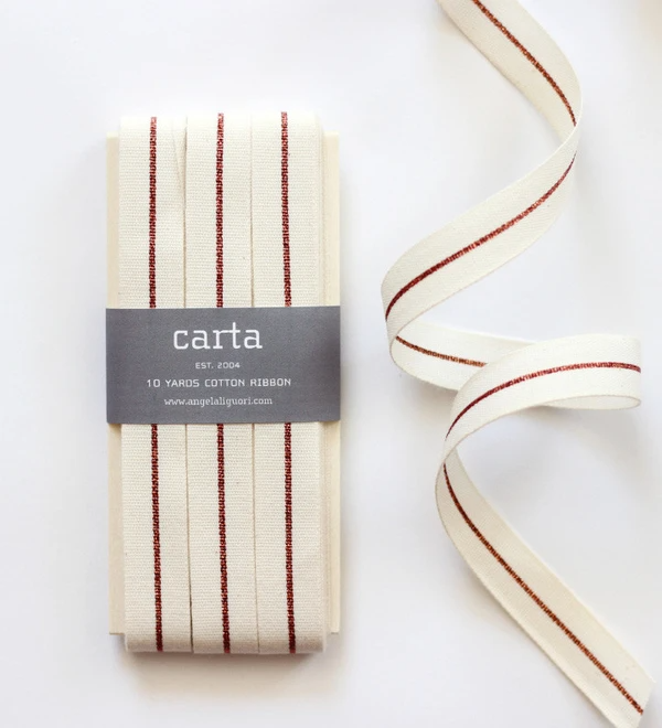 Metallic line tight weave ribbon - Natural/Red