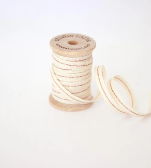 Metallic Line ribbon Wood Spool - Natural/Red Line