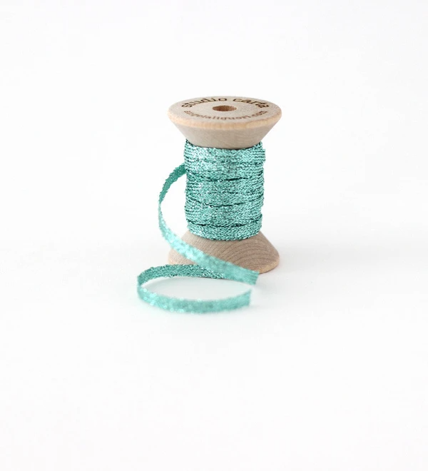METALLIC BRAIDED RIBBON WOOD SPOOL - aquamarine