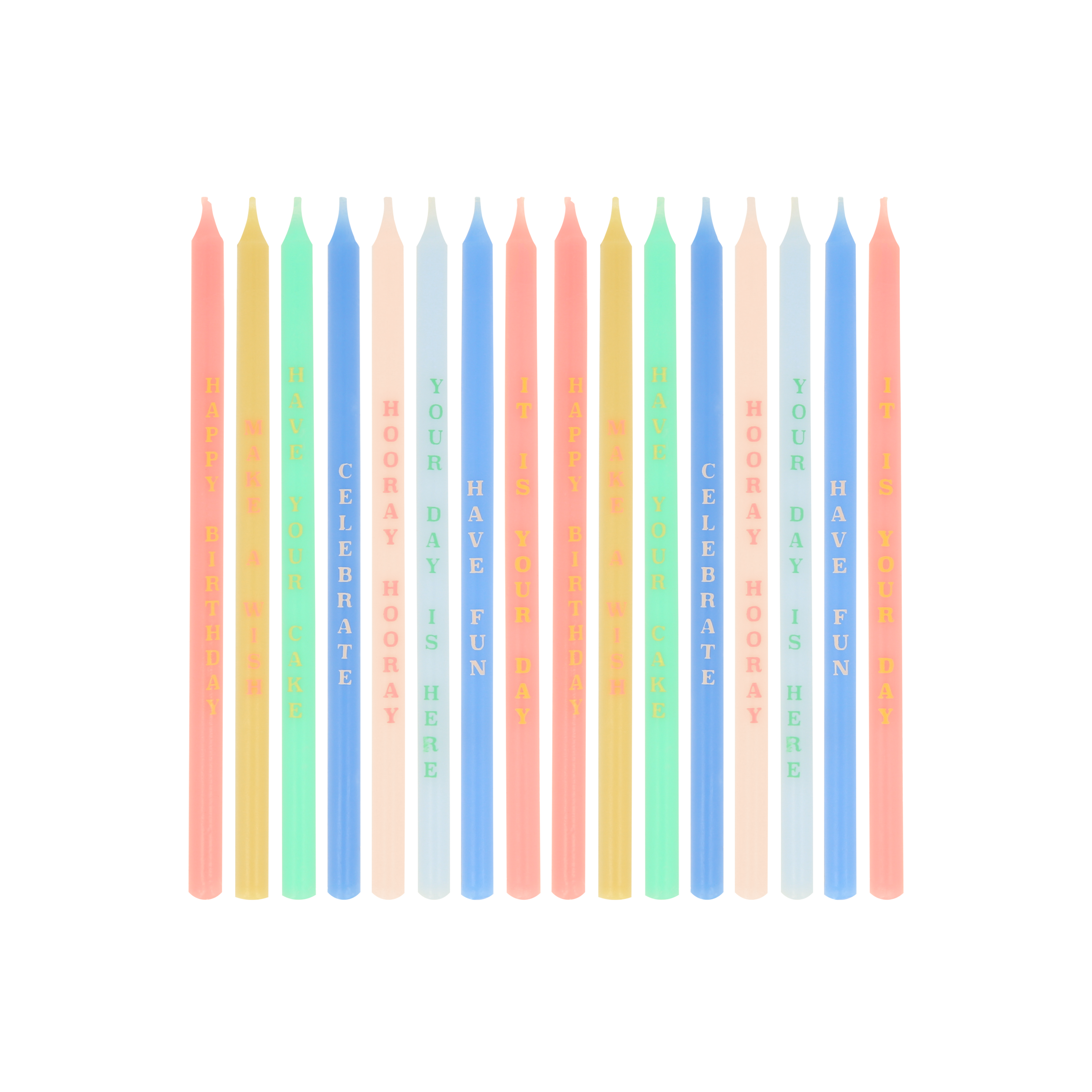- Colored wax candles with fun birthday phrases