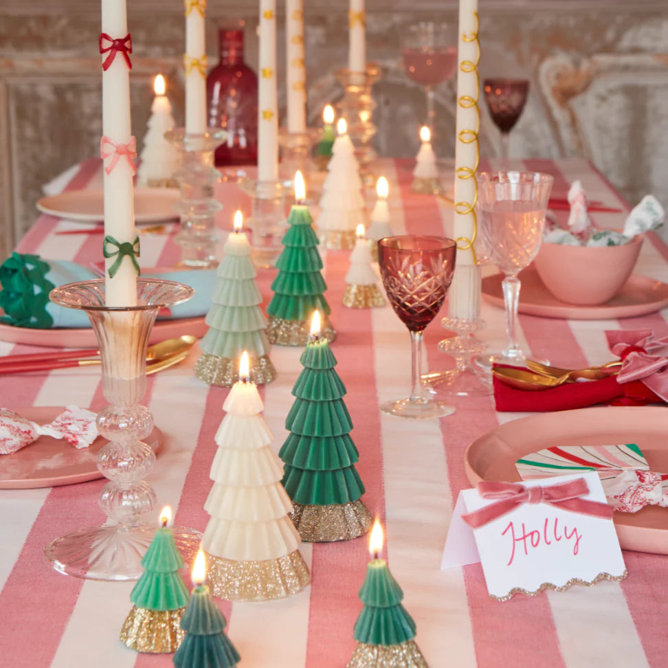 - Embossed bows with handpainted wax in blue, mint green and soft pink