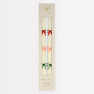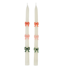 - Ivory candles with hand-painted wax bow relief design in red, pink and green