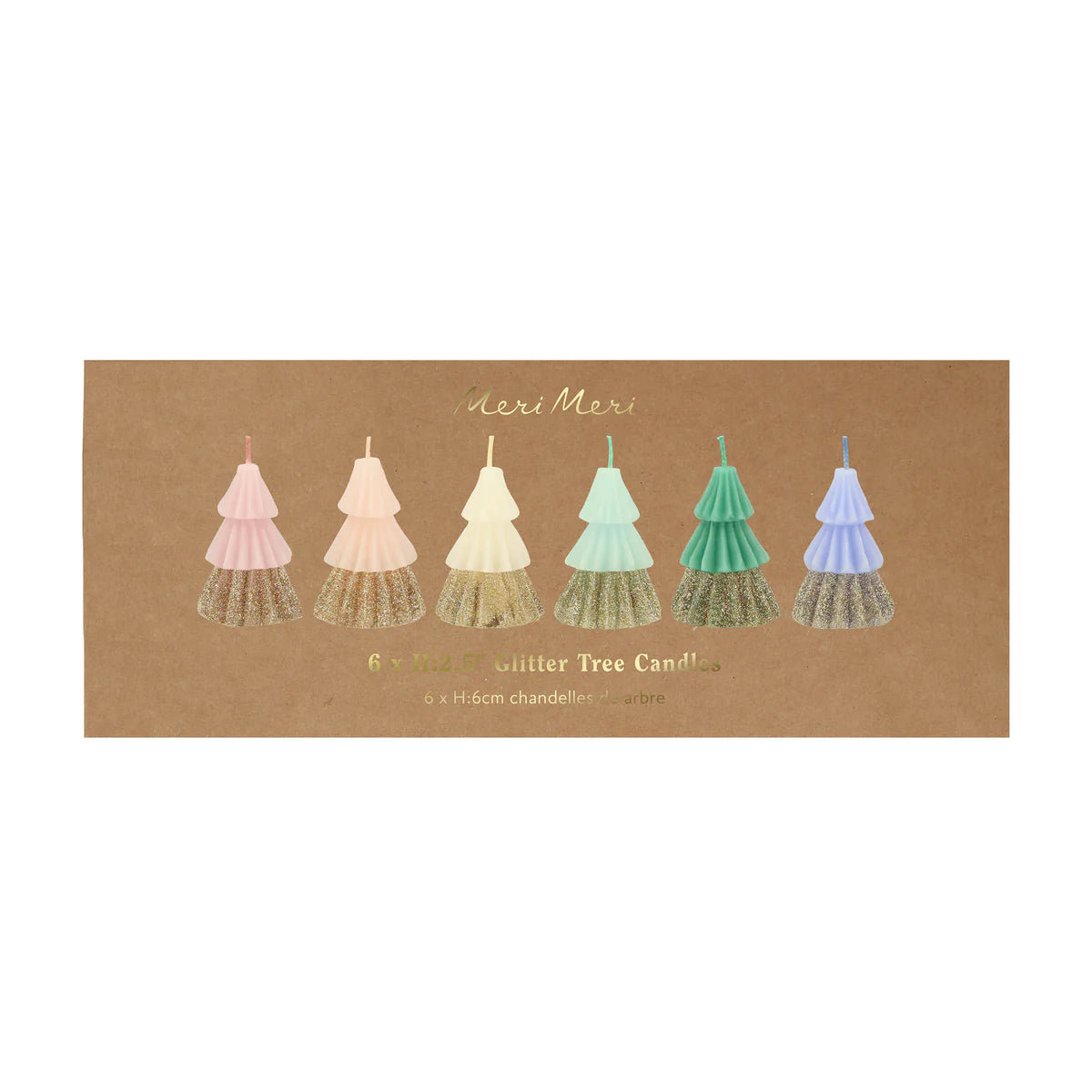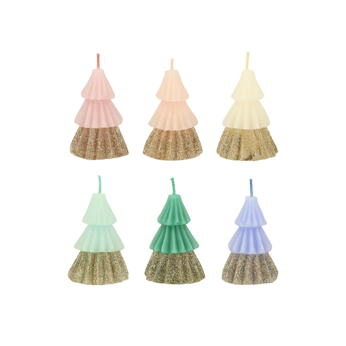 - A set of 6 colored wax candles in cotton candy pink, ballet slipper pale pink, ivory, sea foam mint green, festive green and pale sky blue