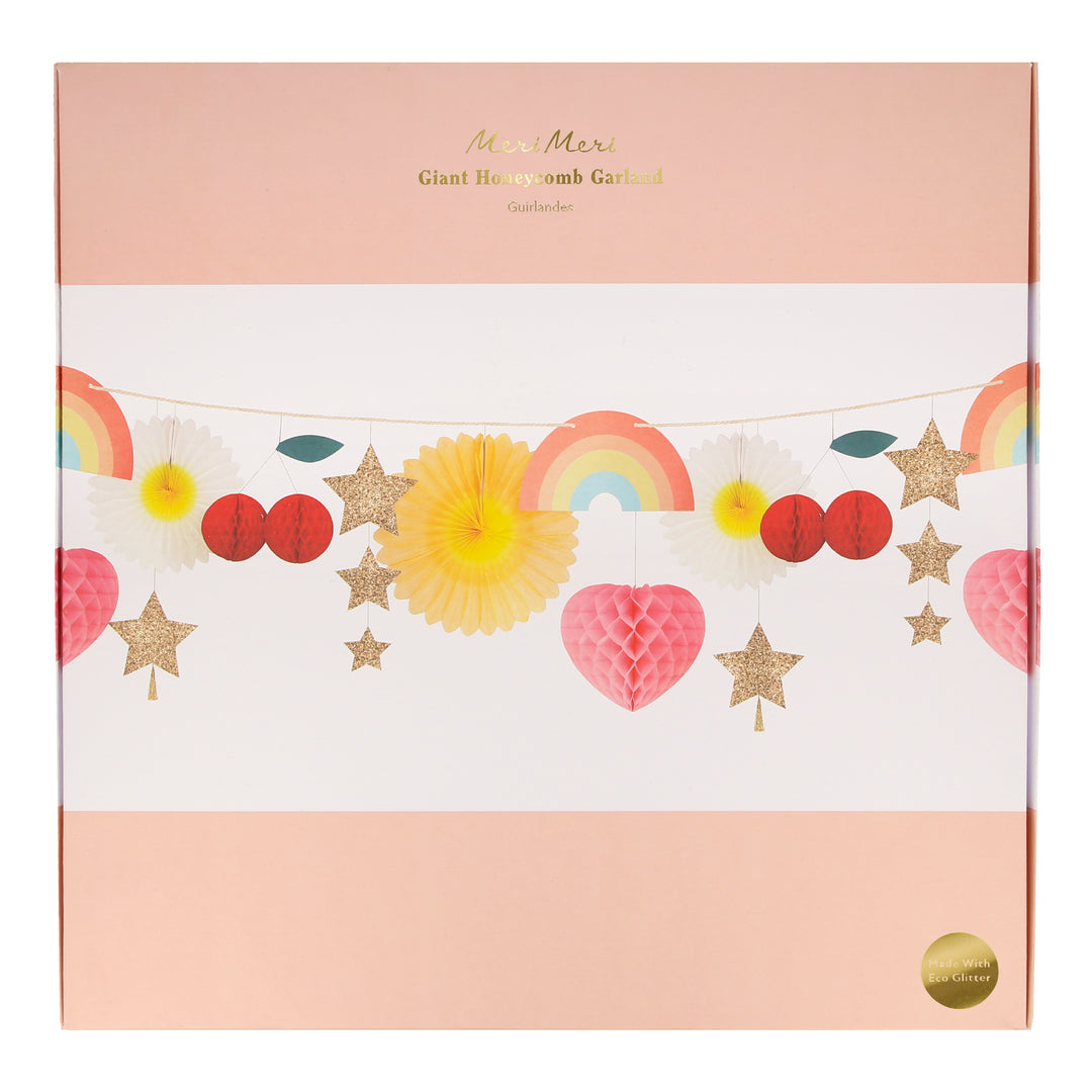 - Pre-threaded honeycomb, pinweels, card and plant-based eco glitter pennants
